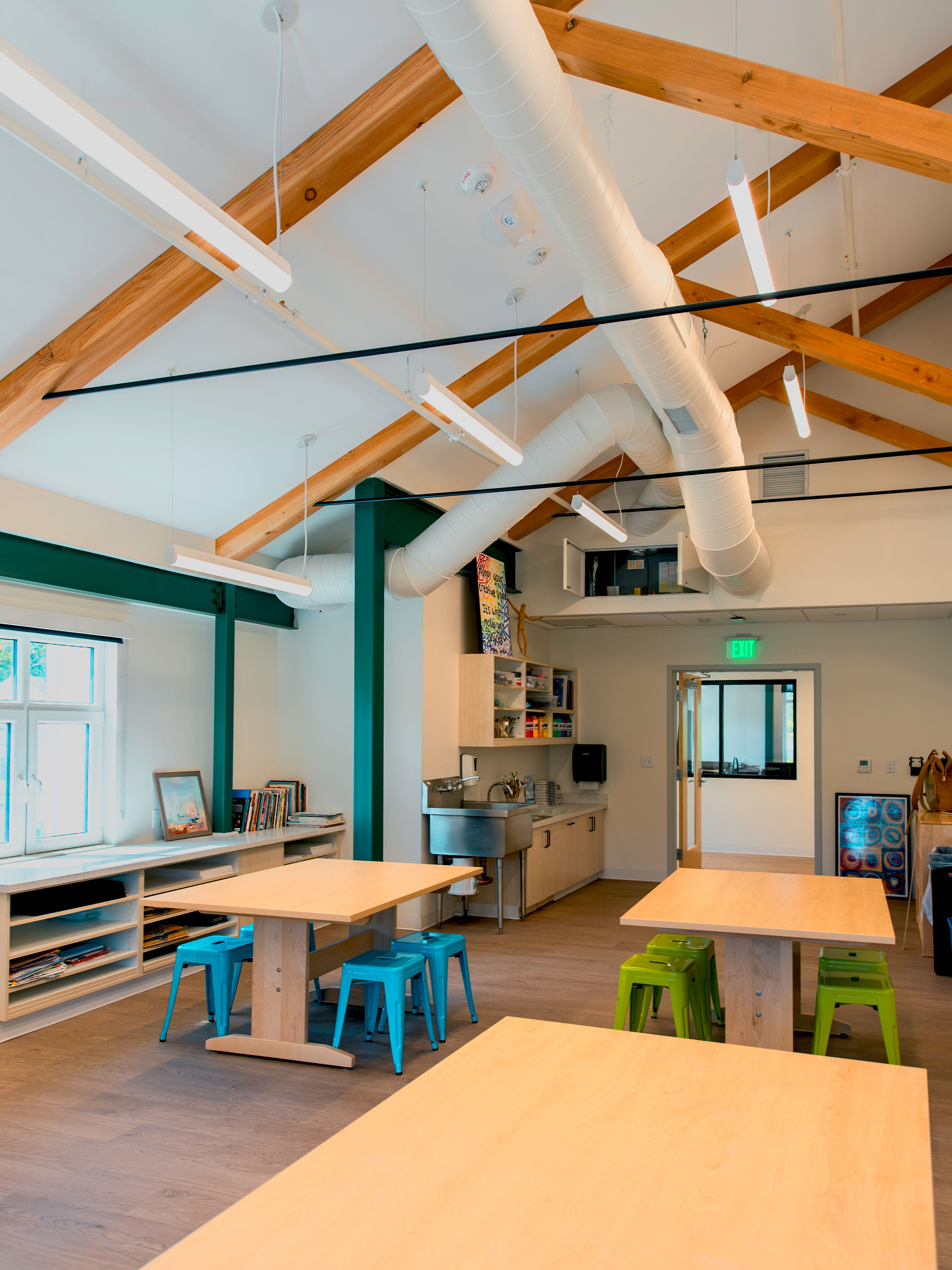 Erland, in collaboration with Scalora Consulting Group and Olson Lewis + Architects, was selected by Tenacre Country Day School to construct a brand-new two-story Design Center. Completed successfully, this 9,480-square-foot, state-of-the-art classroom building now serves as a dynamic educational hub for students across all grade levels. The Design Center was thoughtfully programmed to support creativity, innovation, and hands-on learning. Three bright and airy art studios on the upper level provide dedicated spaces for simultaneous use by both the lower and upper schools. The middle level features a flexible technology classroom and design studio/makerspace designed to foster innovation and collaboration. On the lower level, a fully equipped woodshop and a versatile flex space accommodate project-based learning, after-school programming, and even indoor recess during inclement weather. Together, these specialized environments create a vibrant, multi-use facility that empowers students and faculty to explore, design, and discover in new ways. This project marked Erland’s first partnership with Tenacre Country Day School.