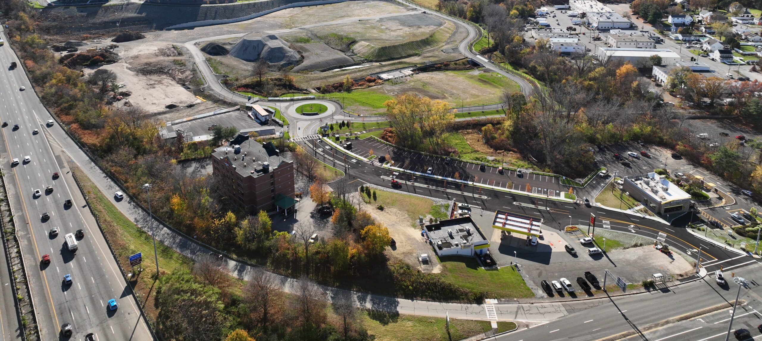 Erland, in collaboration with Stantec, spearheaded the enabling work and infrastructure upgrades for The Vale. This included the demolition of existing structures, modifications to Hill Street, construction of a loop road, installation of utilities and connections, relocation of a brook, and the creation of a pad-ready site for multifamily and townhome residences, a senior living community, and a medical office building.