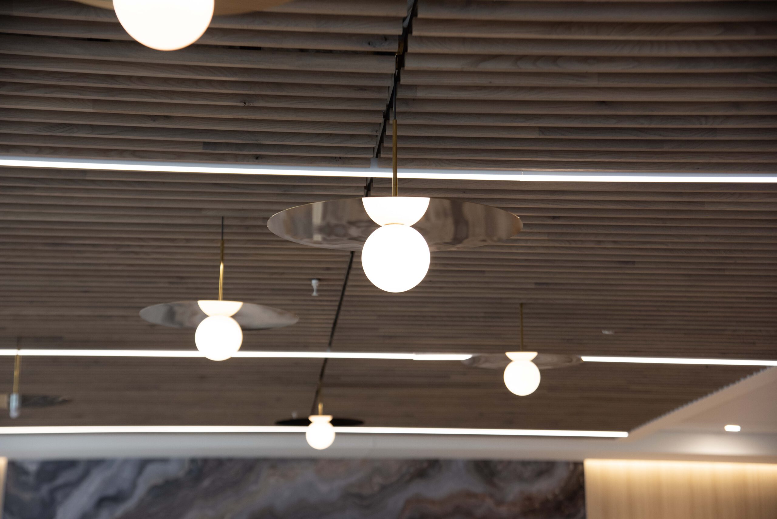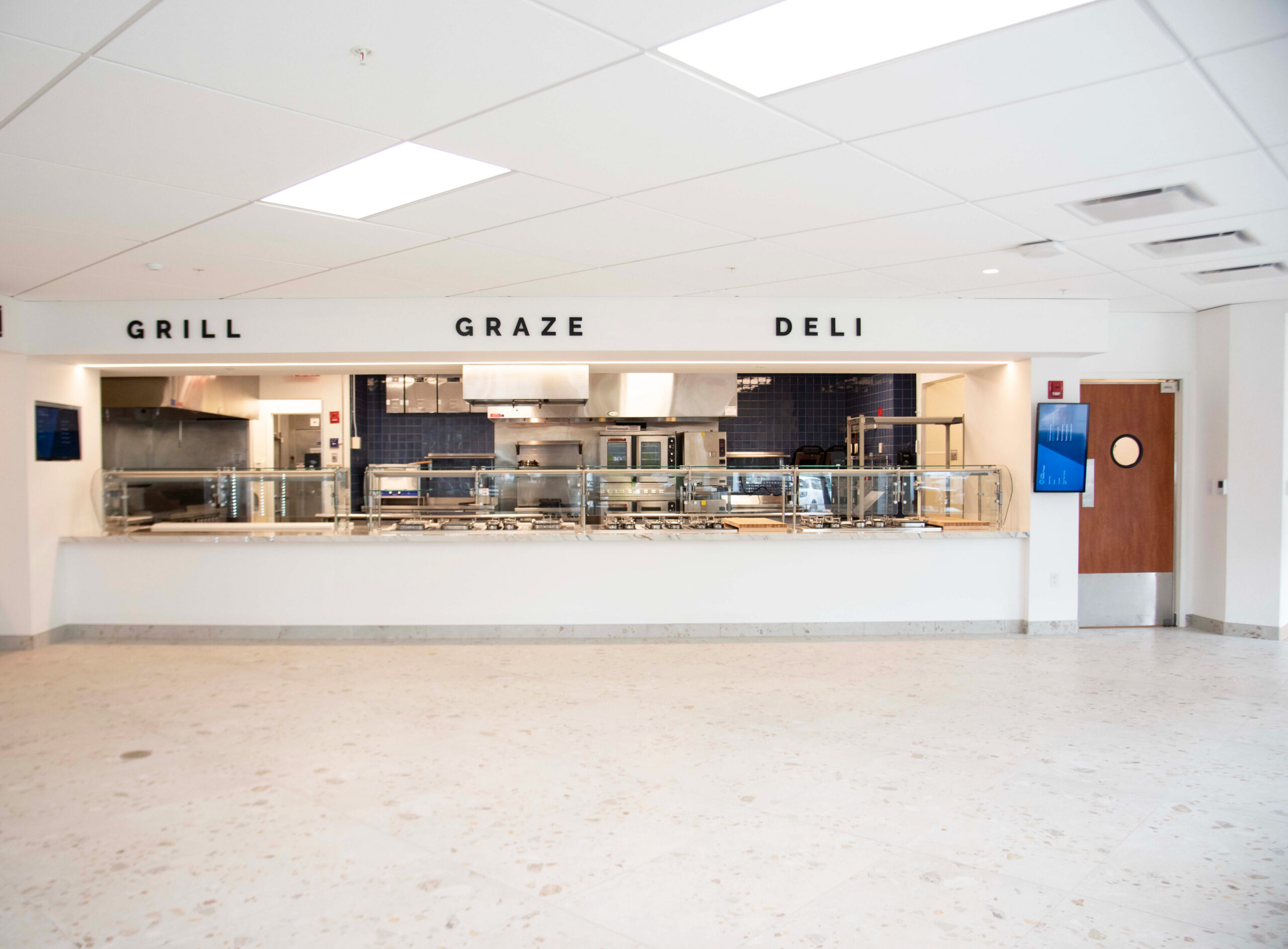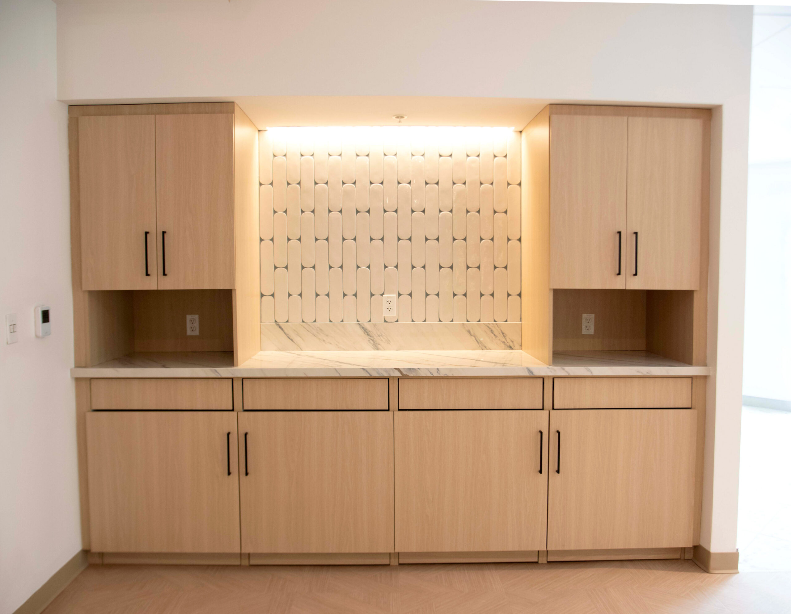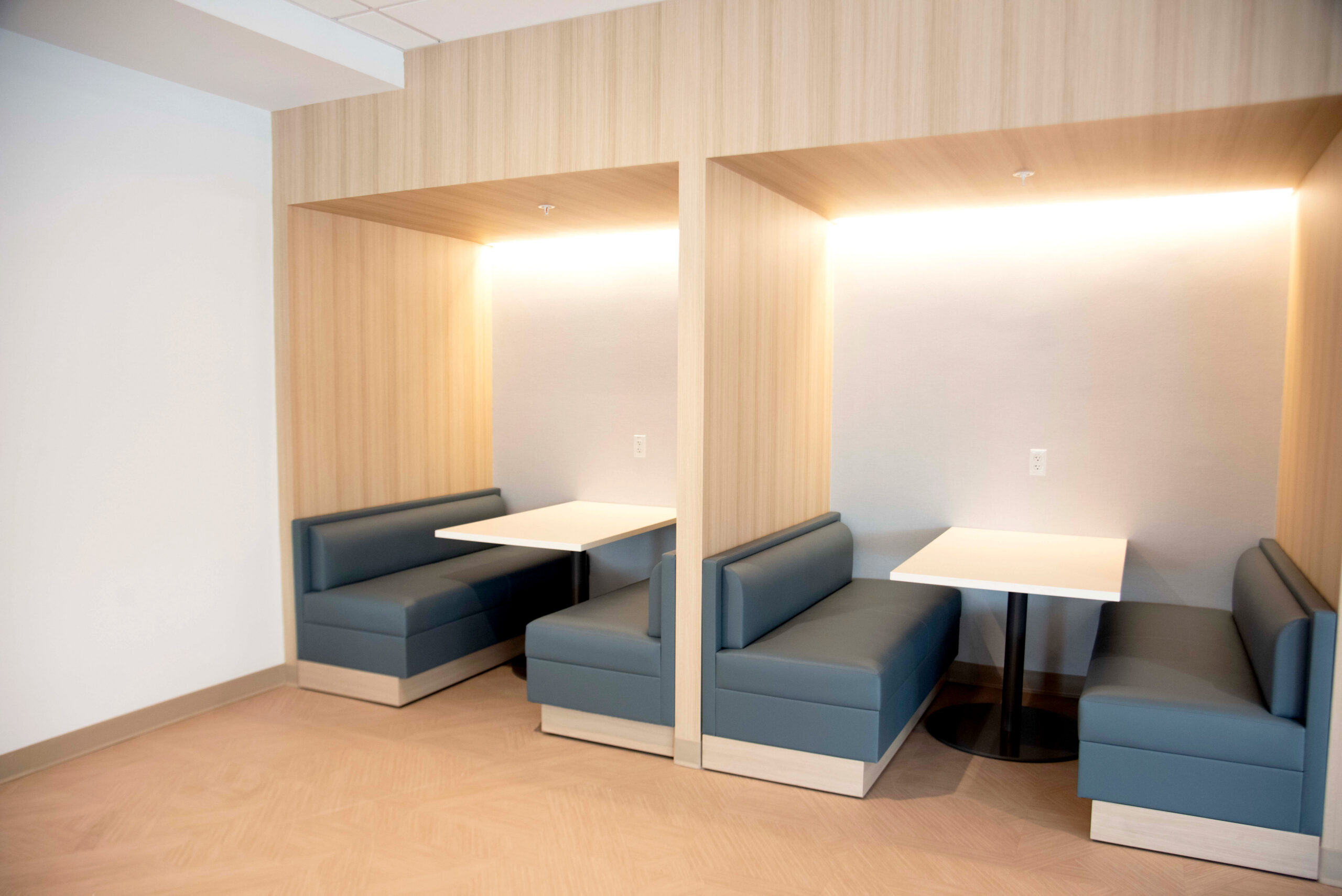 Hobbs Brook Real Estate (HBRE), a leading innovator in commercial real estate with a portfolio of sustainable properties across the United States and Singapore, selected Erland Construction to renovate the cafe at 601 Edgewater Drive, a 5-story, 155,000sf office building within their bustling The Edge campus in Wakefield. Partnering with Margulies Perruzzi Architects, Erland transformed the cafe and dining area into a modern, inviting amenity space for tenants. The renovation featured upgraded finishes, millwork, lighting, acoustical ceiling tiles, and sprinkler heads, along with substantial modifications to the building’s existing mechanical, electrical, and plumbing (MEP) systems. A new outdoor patio was also added adjacent to the cafe to provide additional seating and a flexible gathering space. Throughout the project, Erland worked closely with HBRE to ensure building operations continued seamlessly, prioritizing safety. The project met all FM standards, reflecting Erland’s commitment to safety and quality.