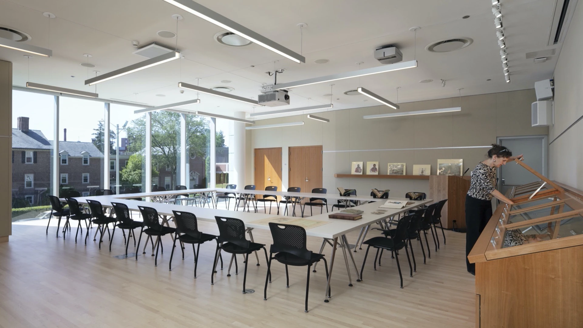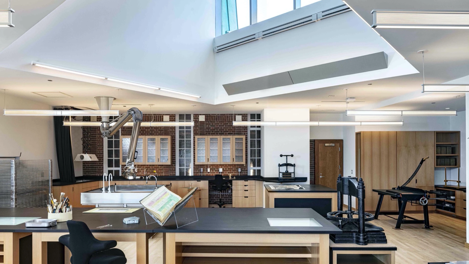 Erland was awarded the expansion and renovation of the American Antiquarian Society – a national research library that houses the largest growing and most accessible collection of texts, printed materials, and digital resources related to all aspects of American history and culture before the twentieth century. The 3-story, 7,000sf addition features a new conservation lab and flexible multi-purpose room for programming as well as state-of-the-art climate-control system that ensures the ongoing preservation of the Society’s precious collection of materials dating from the introduction of the printing press in America. The addition’s facade presents a welcoming face to the community – opening up a portion of the library to view through a glass and patinated copper face. In addition to the expansion, the team overhauled the existing HVAC system and constructed a new mechanical room that services the entire building. In order to upgrade the systems while maintaining the preservation of the Society’s operations and rare historical documents, a multi-phase installation masterplan was created. This played a vital role in understanding the repercussions of certain design choices and mitigating issues throughout implementation.