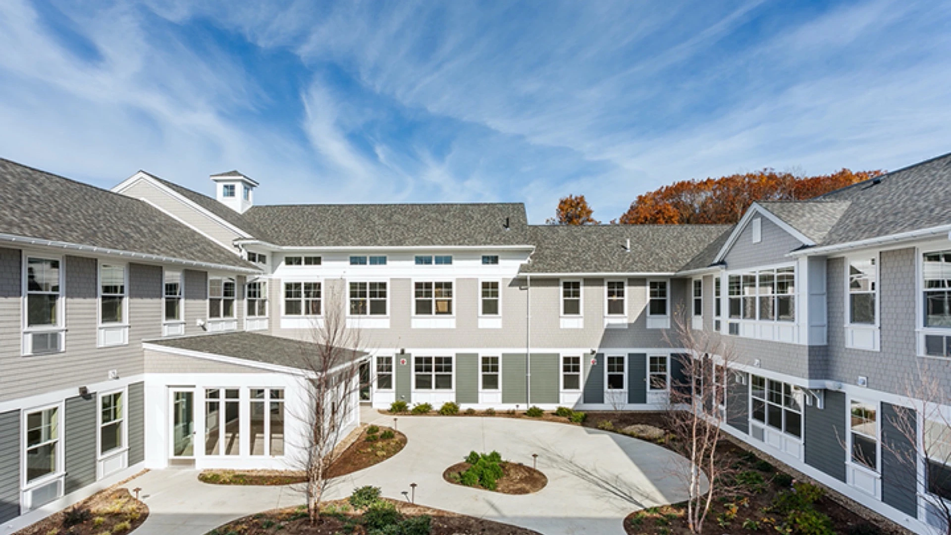 Working for the developer Northbridge Companies, Erland constructed this Memory Care Community in the quaint seaside town of Newburyport. Site development for this project, constructed in a residential neighborhood across from the local hospital, required a large retaining wall. The 70-unit complex features private and semi-private apartments configured in “neighborhoods”, a therapeutic activity and recreation center, and beautifully landscaped grounds with three courtyards for residents to enjoy the outdoors.