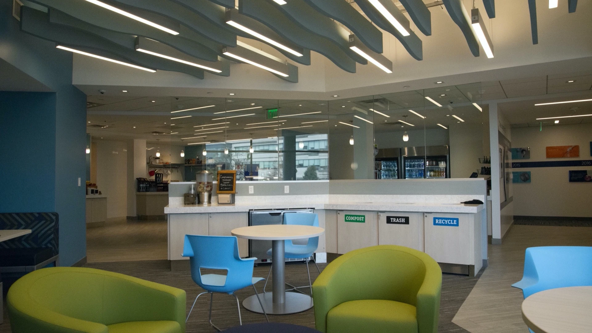 Boston Scientific, a life sciences company dedicated to transforming lives through innovative medical solutions that improve the health of patients around the world, teamed with Erland and Margulies Perruzzi Architects to renovate a combined 115,000sf of their existing headquarters in Marlborough, MA. The occupied renovation was performed in phases to accommodate the company’s ongoing operations. Phase 1 renovations included adding a ‘Grab N’ Go’ café to the main lobby, a new endoscopy lab, Mother’s Room, Town Square, and new coffee station. Phase 2, 3, and 4 renovations included creating open office areas, private offices, and conference rooms as well as a Town Square. The amenity-focused space provides a working environment that promotes culture, increases productivity, supports a better work-life balance, improves collaboration and drives innovation for Boston Scientific employees.