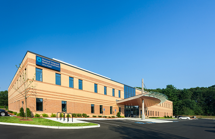 Erland constructed this new medical office building on a site along busy Route 2 in Concord for the developer Normandy Real Estate Partners. This required extensive development of a 6-acre site that included removal of an abandoned septic system and installation of a new one. The site was shared by another busy, occupied office building and construction management plans had to provide for safe access by these tenants. Erland maintained open communication with the landlord of this building throughout construction. Harvard Vanguard’s Concord Hillside Medical Associates selected Erland to buildout the interior. It features patient waiting rooms, examination rooms, a laboratory area, a pharmacy, an ultrasound room, x-ray facilities, an optical shop, and a call center. An exterior MRI pad allows shared equipment to be used at this location.