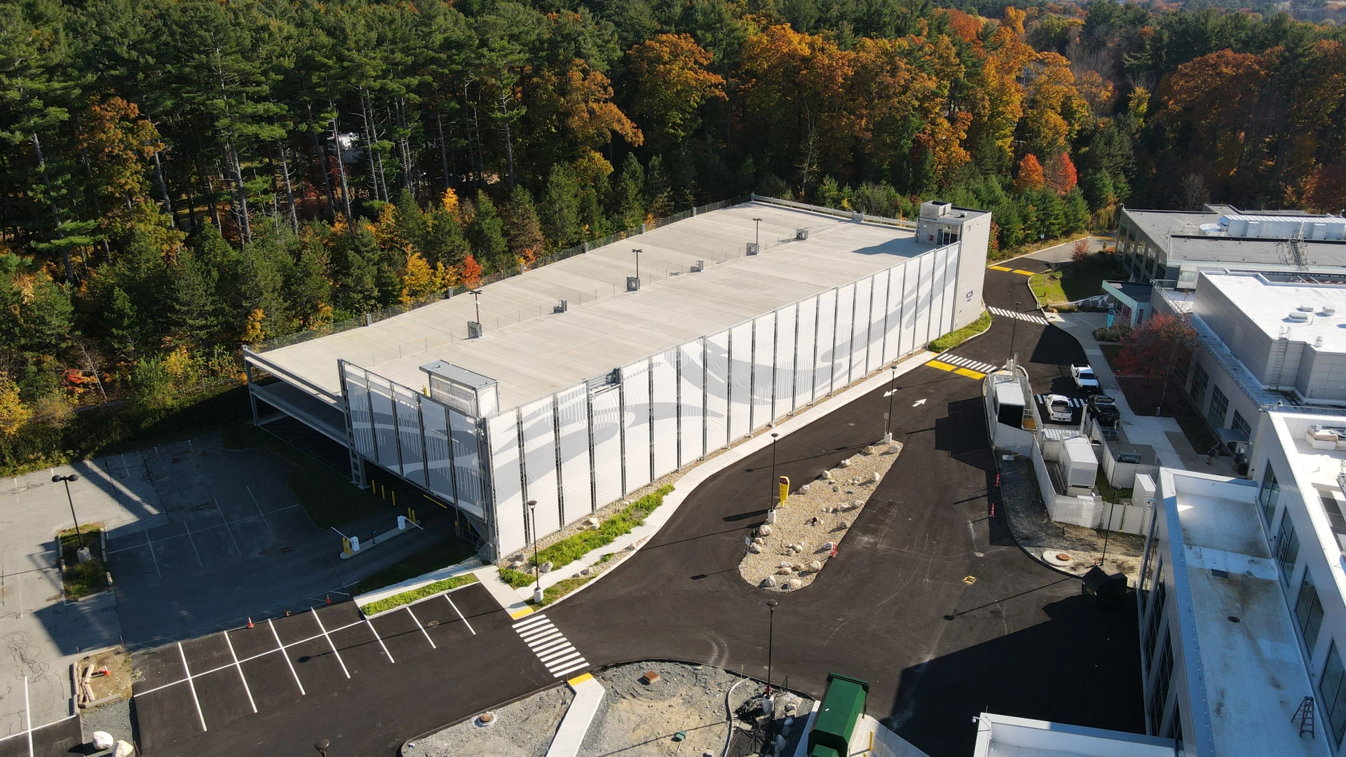 To support the needs of their growing number of employees, EMD Serono selected Erland to construct a new 390 space, 3-story plus grade parking garage on their evolving Billerica campus. This was Erland’s second time partnering with EMD Serono. The project increased EMD Serono’s existing parking by net 290 spaces. The parking structure includes a 3-level stairwell and elevator. The Billerica campus remained occupied for the duration of the project. Erland developed a precise site-specific safety plan to mitigate any noise and disruption to employees and visitors and partnered with EMD Serono’s facilities team to minimize disruption to the company’s ongoing operations.