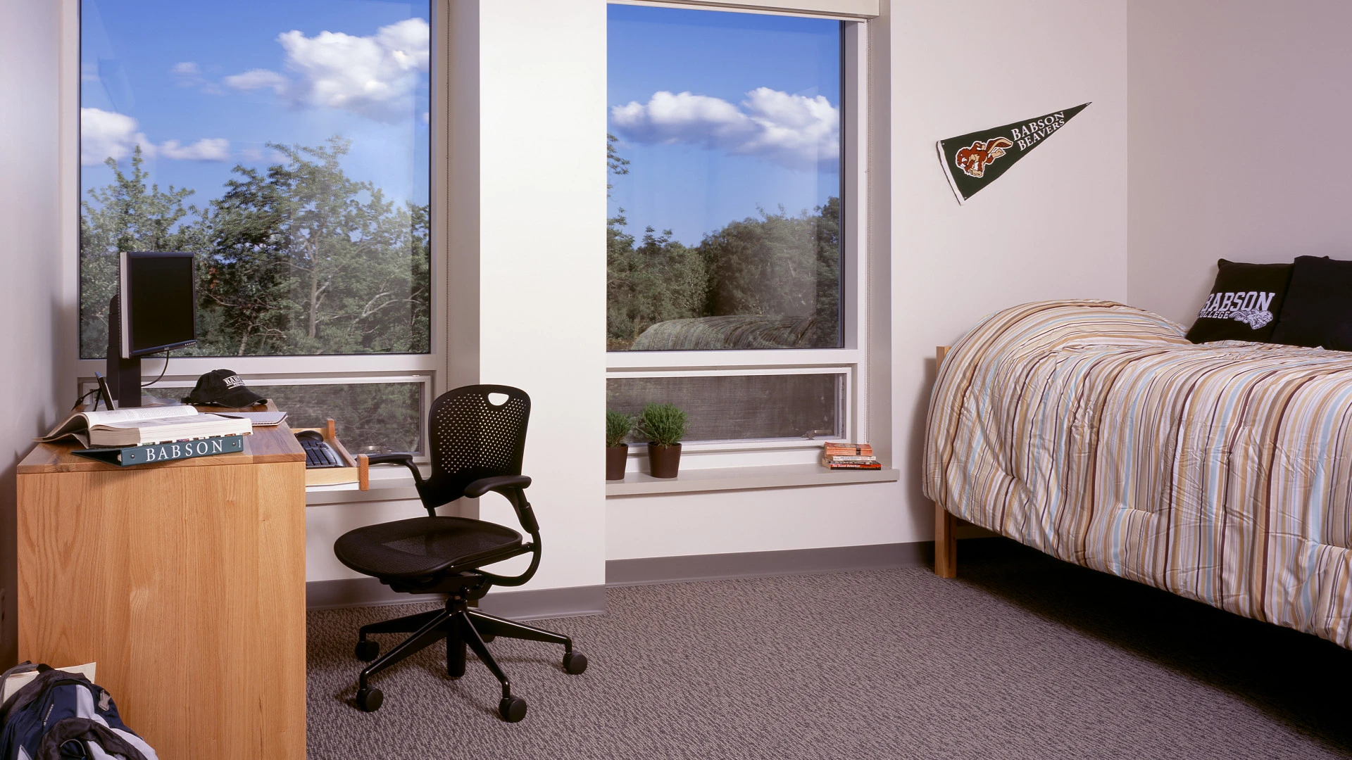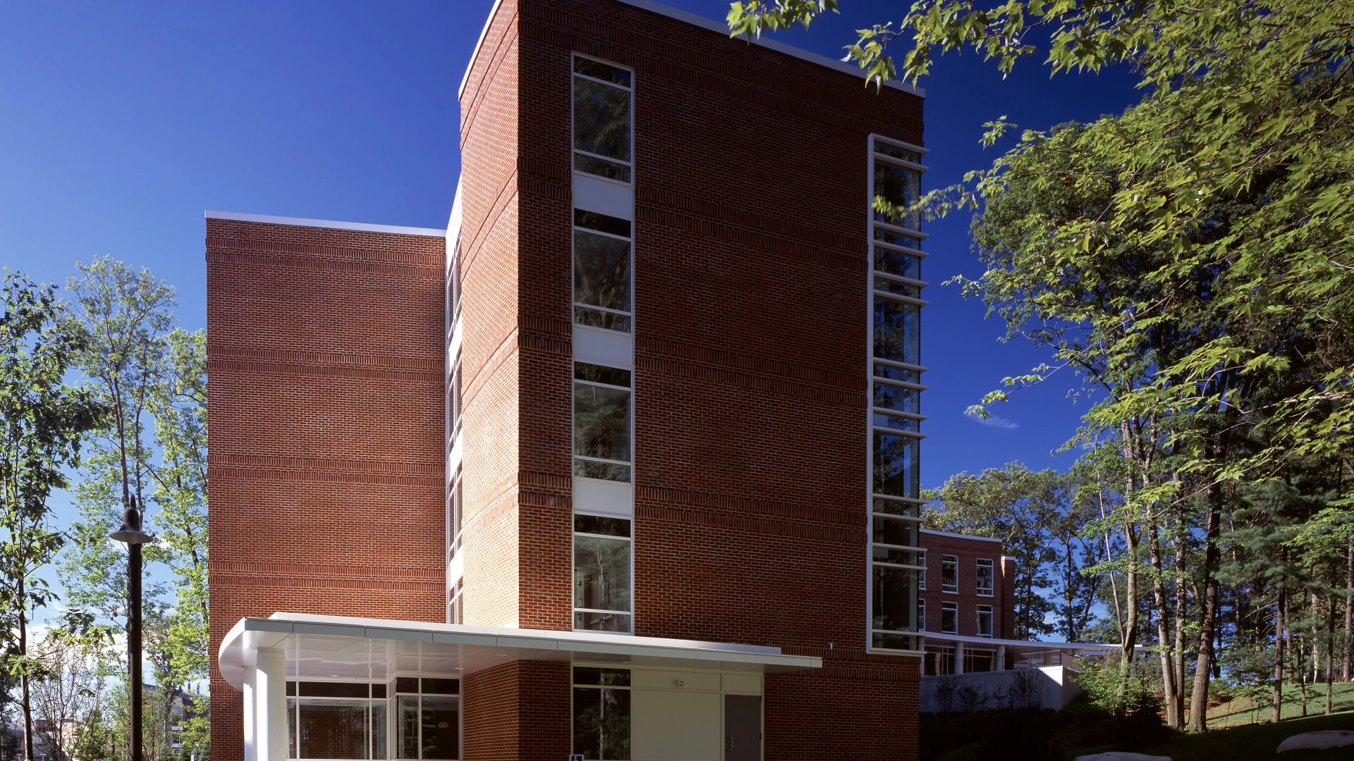 To satisfy their growing need for housing, Babson hired Erland to construct this steel-framed, curved, 5-story building set into a hillside. The new dormitory accommodates 124 students in 31 apartment-style units, each containing four bedrooms, a bathroom, a living room and a kitchenette. The building features student lounges, a lobby and a twobedroom apartment for the Resident Director. It incorporates a 4-pipe HVAC system. During construction, students– used to cutting across the job’s location–had to be rerouted around the site, making safety a key factor. The building, set deep inside the Babson campus, required utilities be brought in from a nearby street and a chiller line be laid from the school’s central cooling plant. In spite of the aggressive schedule and many unforeseen challenges, Erland was able to complete the project in just 11 months. Final cost was $200/sf. We returned significant savings to the Owner.