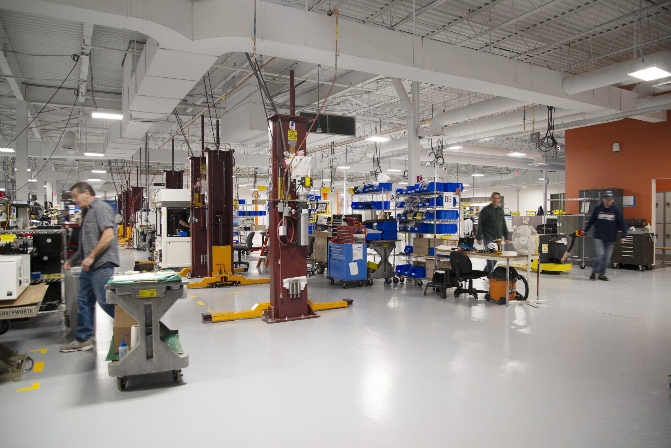 Erland fit out the new U.S. Corporate Headquarters for Mycronic – a hightech Swedish public company and creator of world-leading production equipment for the electronics assembly, display and packaging industries. Mycronic had three different locations in Massachusetts, with varying lease end dates, and consolidated their operations into this new office space in Tewksbury. The project’s fast-tracked schedule was tied to the required move out date of one of Mycronic’s existing offices. Cushman & Wakefield brought Erland on early in the process to assist with the due diligence and scheduling efforts to reassure the client’s needs could be met. The existing 102,000sf unoccupied building was transformed into 40,000sf of open office space as well as a 60,000sf assembly area. Designed with collaboration in mind, the new layout features several huddle and meeting areas as well as larger conference rooms. A cleanroom, specialty labs, and product testing and training areas were also constructed. Infrastructure improvements included upgrading both the electrical and gas service; requiring the installation of a new switch gear as well as rooftop units. This was Erland’s first time partnering with Mycronic.