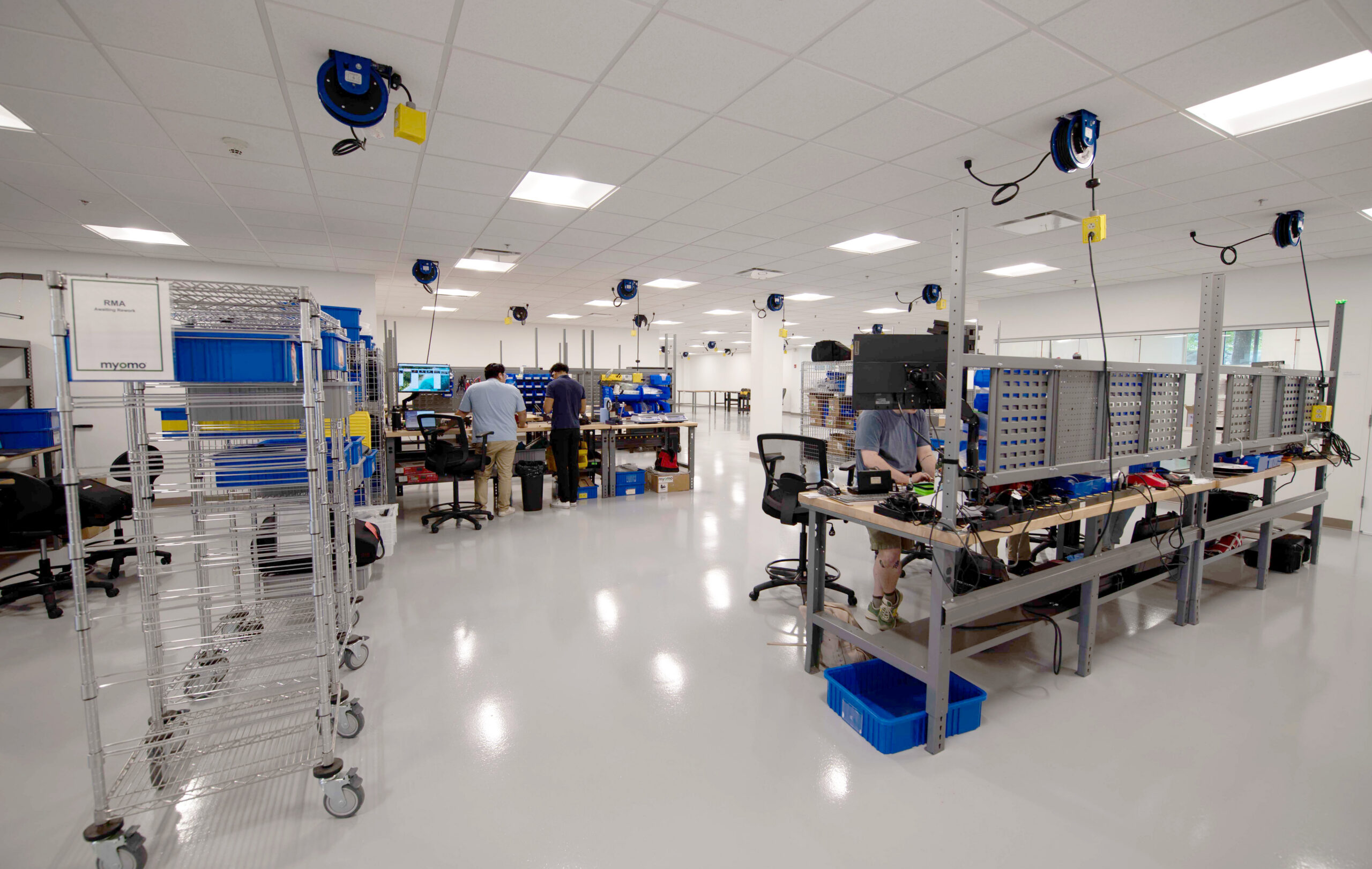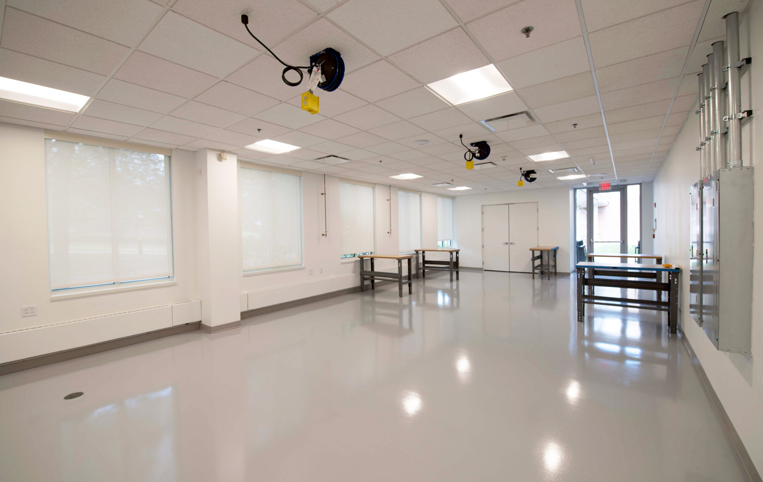 Nordblom once again partnered with Erland—alongside Maugel DeStefano Architects—for the second phase of tenant improvements for Myomo. This phase converted the building’s existing fitness center into modern office space. The renovation required selective interior demolition and was carried out while the building remained fully occupied. Upon completion, the area featured a combination of private offices, huddle rooms, and shared collaborative spaces. Upgrades included new epoxy flooring, ceiling tiles, carpeting, and enhancements to the existing mechanical, electrical, and plumbing systems.