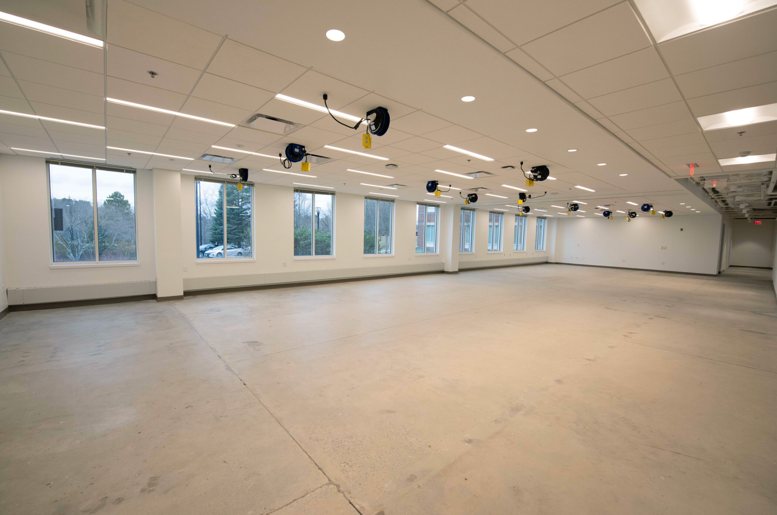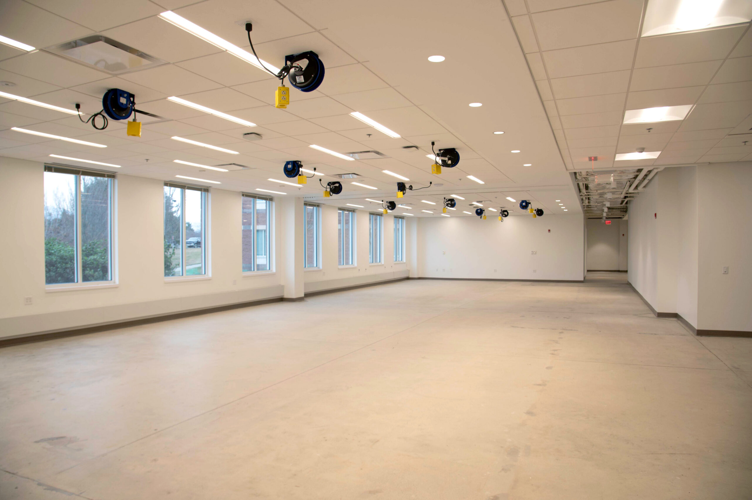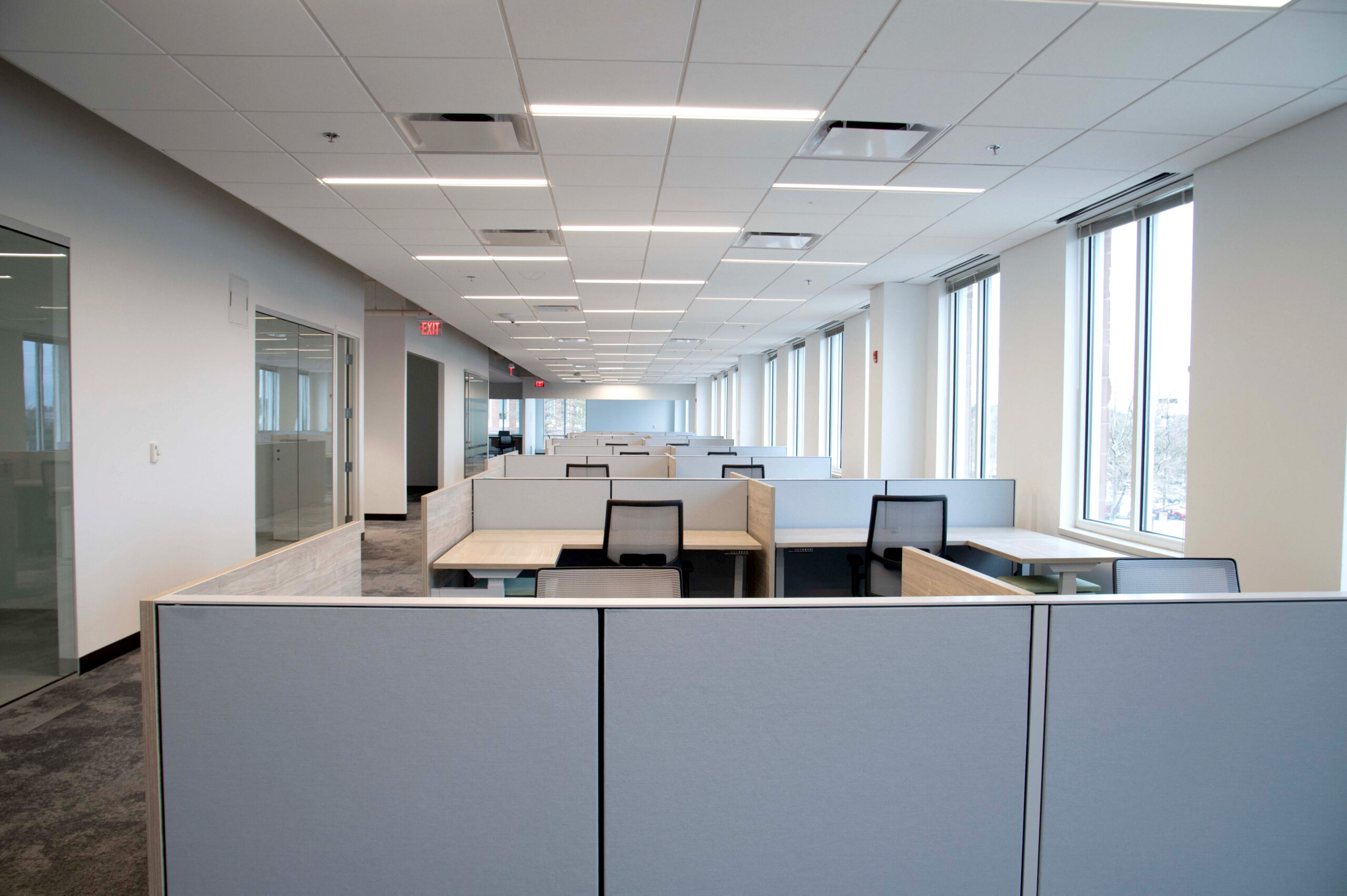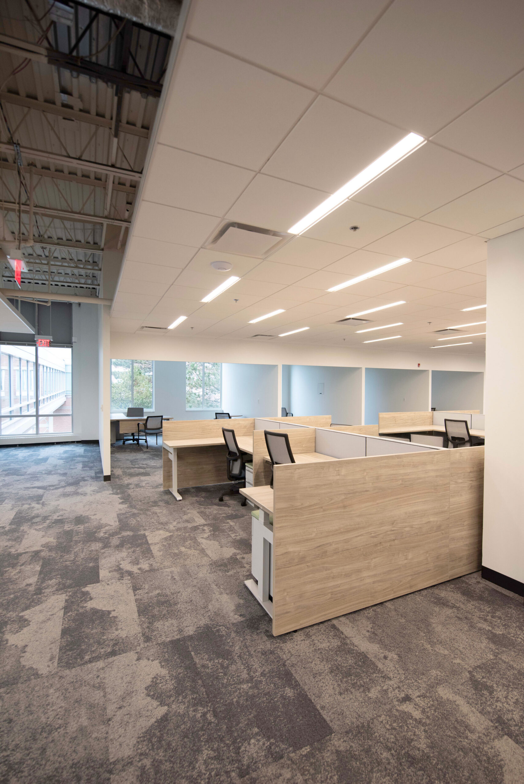 Nordblom selected Erland, in collaboration with Maugel DeStefano Architects, to upgrade 18,000sf of space within 45 Blue Sky Drive for future tenant Myomo, a leader in orthotics and prosthetics robotics. This transformative project was executed in two well-coordinated phases to ensure minimal disruption to the building’s occupants. The lower level includes the creation of specialized labs for 3D printing, engineering, and quality control. New offices, an engineering lab, huddle and conference rooms, a wellness room, and a kitchen/break room were constructed on the second floor. The project required the reconfiguration of the space’s existing mechanical, electrical, and plumbing systems (MEPs) and acoustic ceiling tile (ACT) to accommodate these enhancements. The building remained occupied throughout construction.