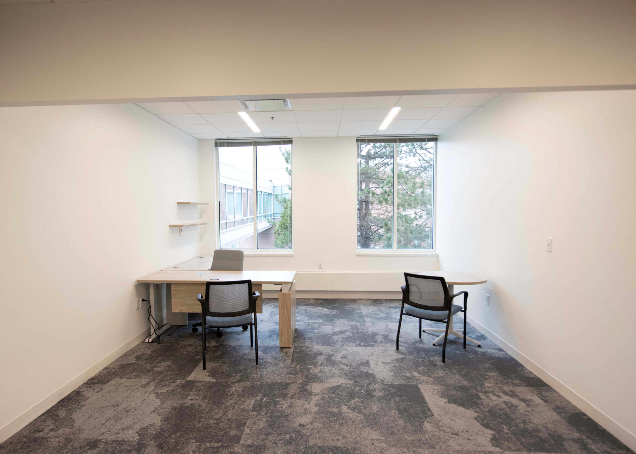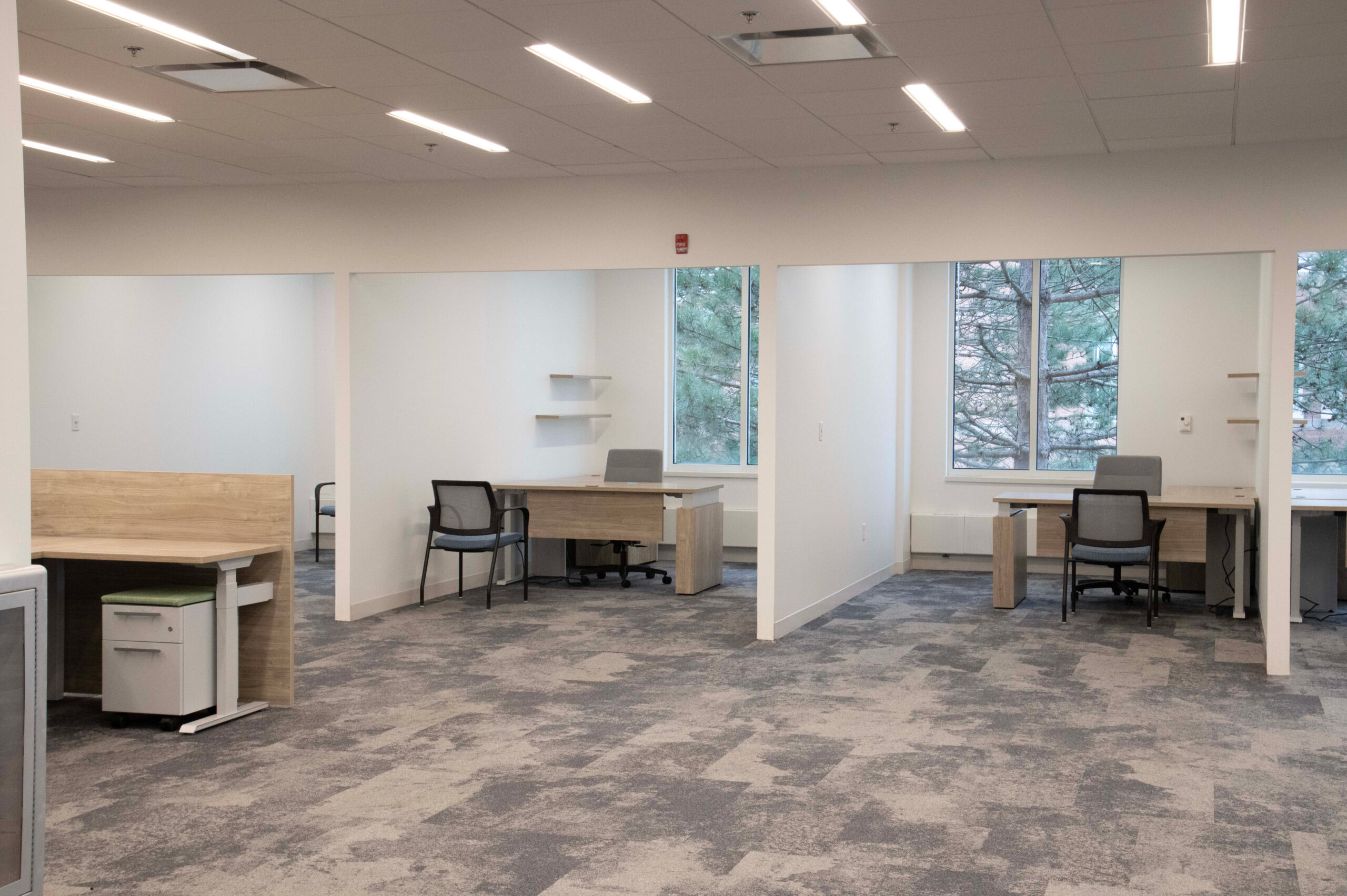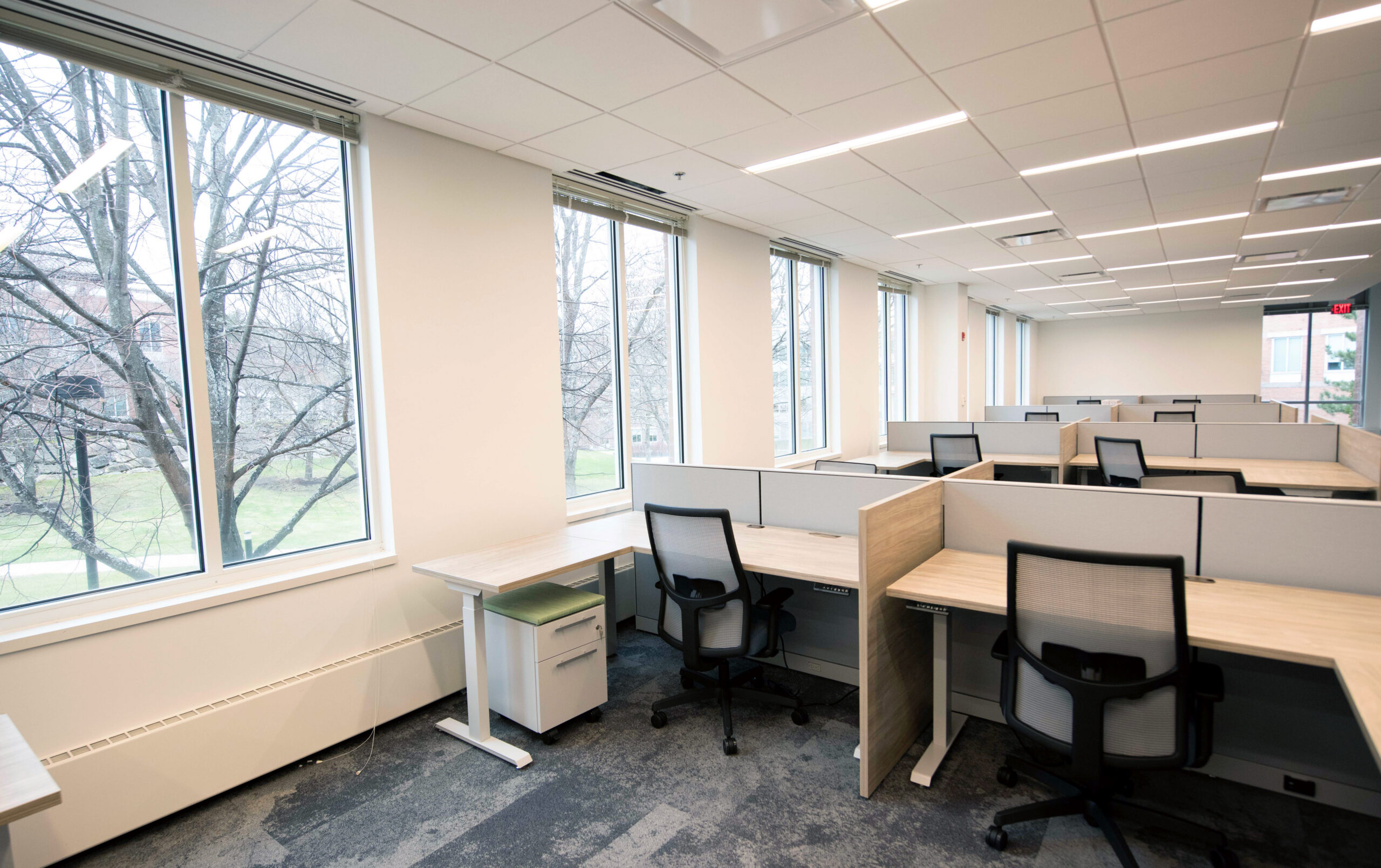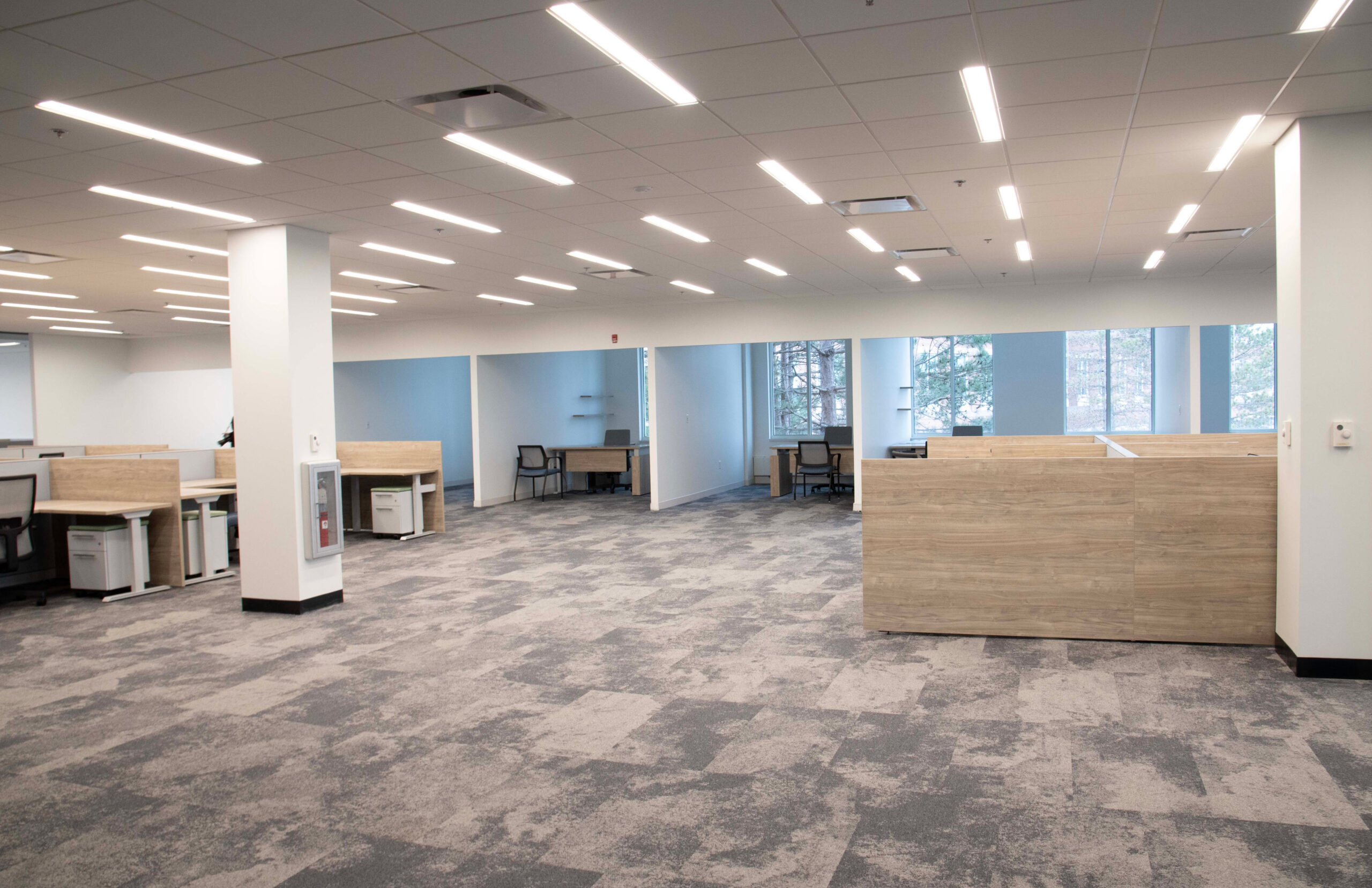 Nordblom selected Erland, in collaboration with Maugel DeStefano Architects, to upgrade 18,000sf of space within 45 Blue Sky Drive for future tenant Myomo, a leader in orthotics and prosthetics robotics. This transformative project was executed in two well-coordinated phases to ensure minimal disruption to the building’s occupants. The lower level includes the creation of specialized labs for 3D printing, engineering, and quality control. New offices, an engineering lab, huddle and conference rooms, a wellness room, and a kitchen/break room were constructed on the second floor. The project required the reconfiguration of the space’s existing mechanical, electrical, and plumbing systems (MEPs) and acoustic ceiling tile (ACT) to accommodate these enhancements. The building remained occupied throughout construction.