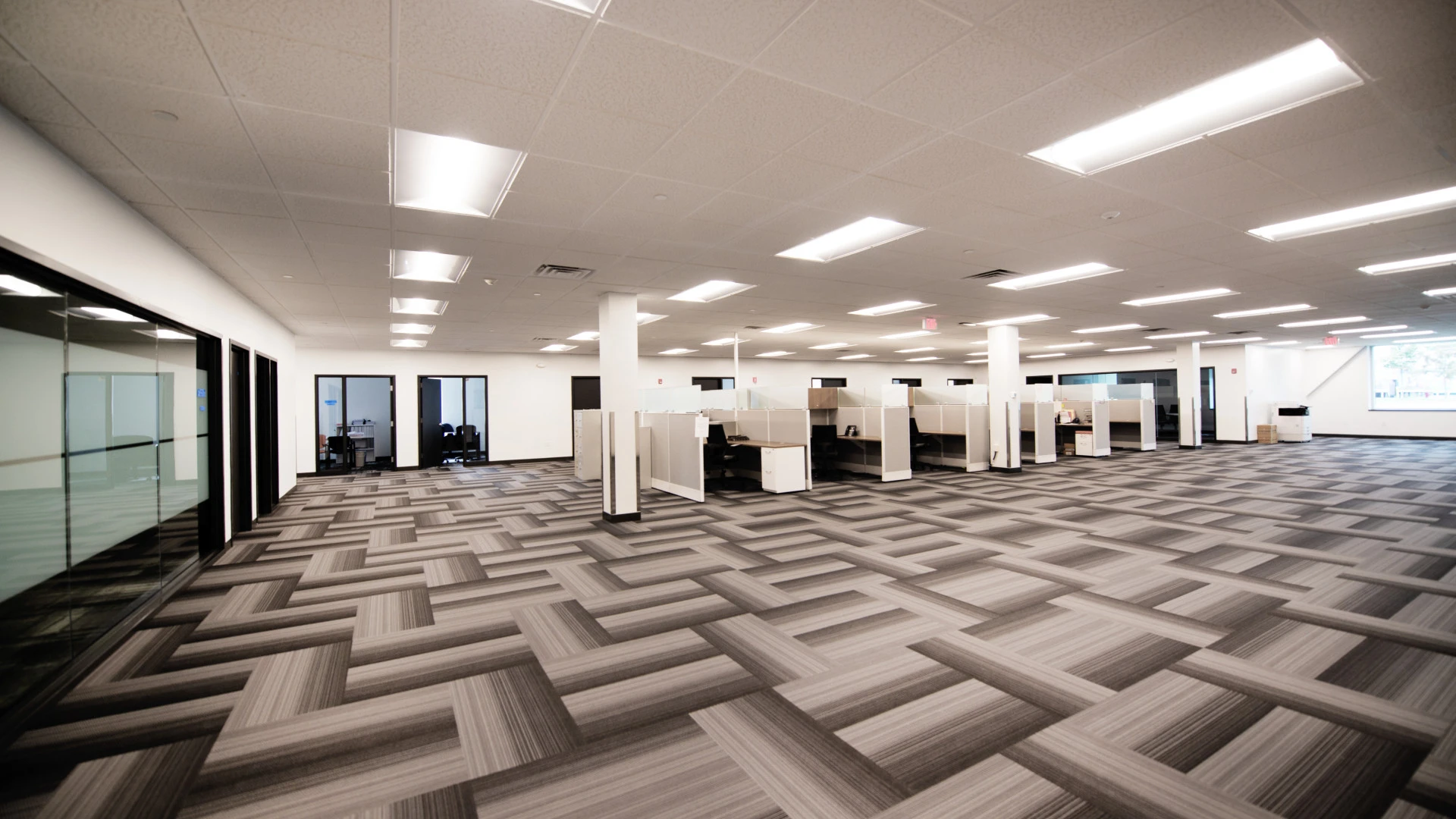 In an effort to turn Building 18 into the new corporate headquarters for tenant LeMaitre Vascular, Nordblom teamed with Erland to renovate and fit-out 26,447 sf of existing office space into a state-of-the-art medical device corporate headquarters. The building’s facade underwent a complete refresh—receiving all new windows and storefronts as well as curtainwall and an overhead door for deliveries. Interior walls, partitions, ceilings, and finishes were demolished in order to create the tenant’s desired layout. The open-concept design includes new offices and conference rooms along the perimeter, kitchenette, reception area, and storage space in addition to the warehouse buildout. In lieu of a loading dock, Erland installed a hydraulic scissor lift for deliveries which required the creation of a pit within the slab to keep the equipment flush and the addition of a safety railing to prevent injury. Erland also refreshed the existing restrooms, upgraded the fire protection system, and ensured the building meets all ADA requirements. New sidewalks and sewage drains were installed in addition to the repaving of the parking lot to enhance curb appeal as well as the end-user experience.