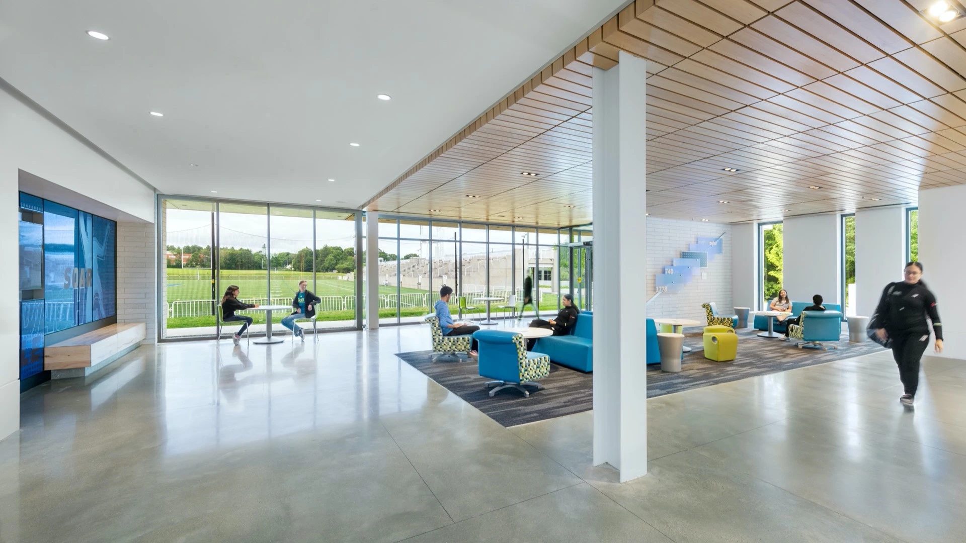 The new Snyder Center at Phillips Academy was built on an extremely sloped site adjacent to the school’s football field that remained in use throughout construction. A soil retention system was used to safeguard against collapse. The new field house includes three basketball courts surrounded by an indoor track, 12 squash courts — 11 regulation and one tournament grade court with viewing deck; and specialty flooring for each purpose. The Snyder Center is the fifth project Erland has done on the Phillips Academy campus and received LEED Platinum certification.
