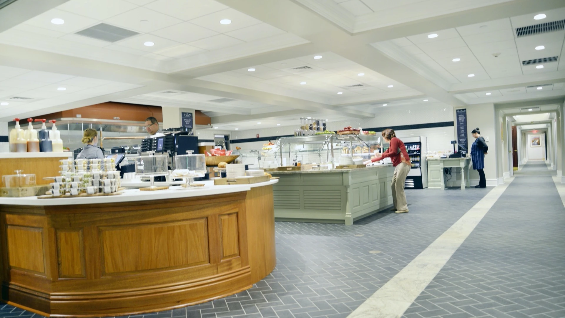 The Andover Companies Guard House and Dining Renovations scope included the construction of a new 16x16ft guard house constructed following the same program of the new Wellness Center and existing building. It utilized the same granite and brick masonry veneers, elegant exterior architectural trim, and slate roofing to match the rest of the campus. The dining renovations included a phased construction schedule to limit the impact to the users of the building. Selective demolition followed by a complete renovation of the existing kitchen, servery, and dining room were all part of the scope. The project intent was to bring the back of house components up the servery line for a cook-to-order type of program versus batch cooking and the buffet style servery they previously had. Furnishing and installation of all new kitchen equipment was a major part of this project.