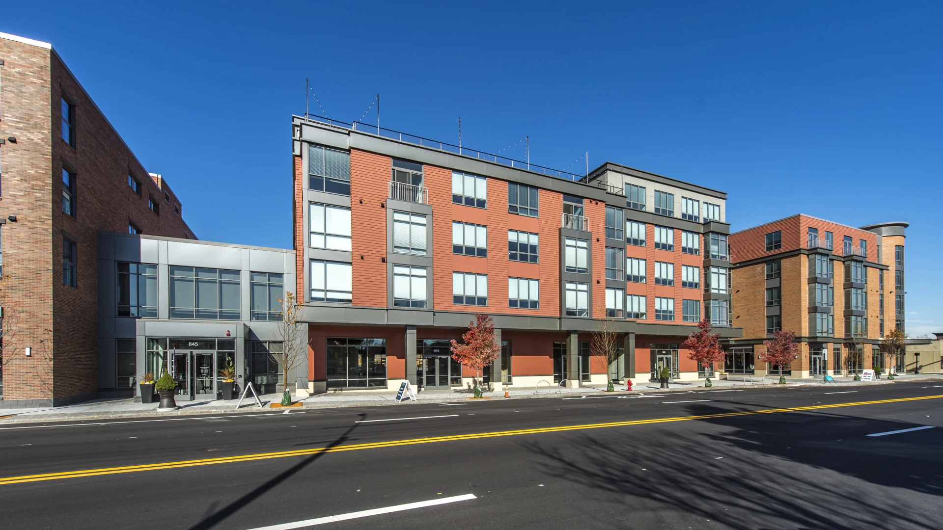Washington Place Owner, LLC joined forces with Erland Construction and Prellwitz Chilinski Associates to create a new 299,000sf mixed-used property at the corner of Walnut Street and Washington Street in Newton. The two out-of-the-ground buildings have one level of below-grade parking, one level of retail space, and 3- to 4-stories of wood-framed residential units with quartz countertops and stainless steel appliances. In total, TRIO (Washington Place) houses 140 apartments, 41,960sf of commercial space, 309 parking spaces, and over 15,000sf of public outdoor space. Residential amenities include a luxury clubroom, state-of-the-art fitness center, public art gallery and much more. Safety and sustainability were major priorities throughout construction. Erland took great care mitigating disruption to neighboring homes as well as the flow of traffic on these busy streets. TRIO (Washington Place) was designed and constructed to achieve LEED Gold certification. Washington Place Owner, LLC, Erland and Prellwitz Chilinski Associates closely collaborated to attain this level of sustainability.